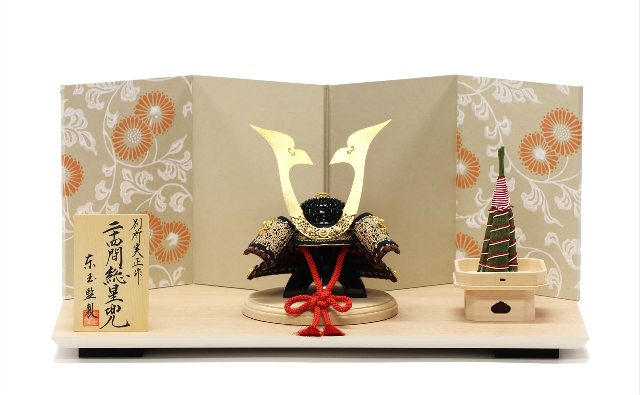 平安住一水 8号 極上飾兜 黒小札 赤糸威 竹雀金物 「金雀矢鏡」