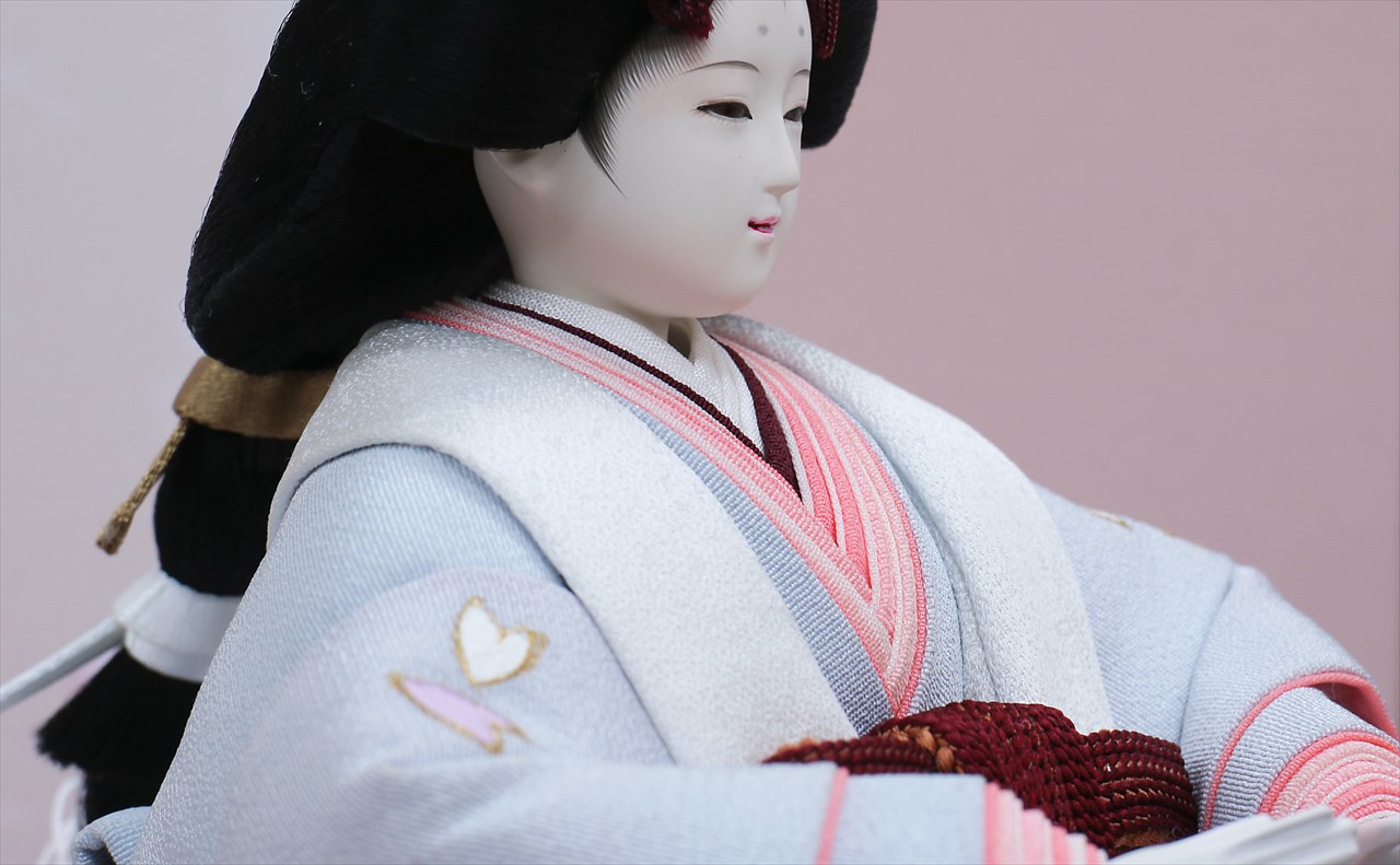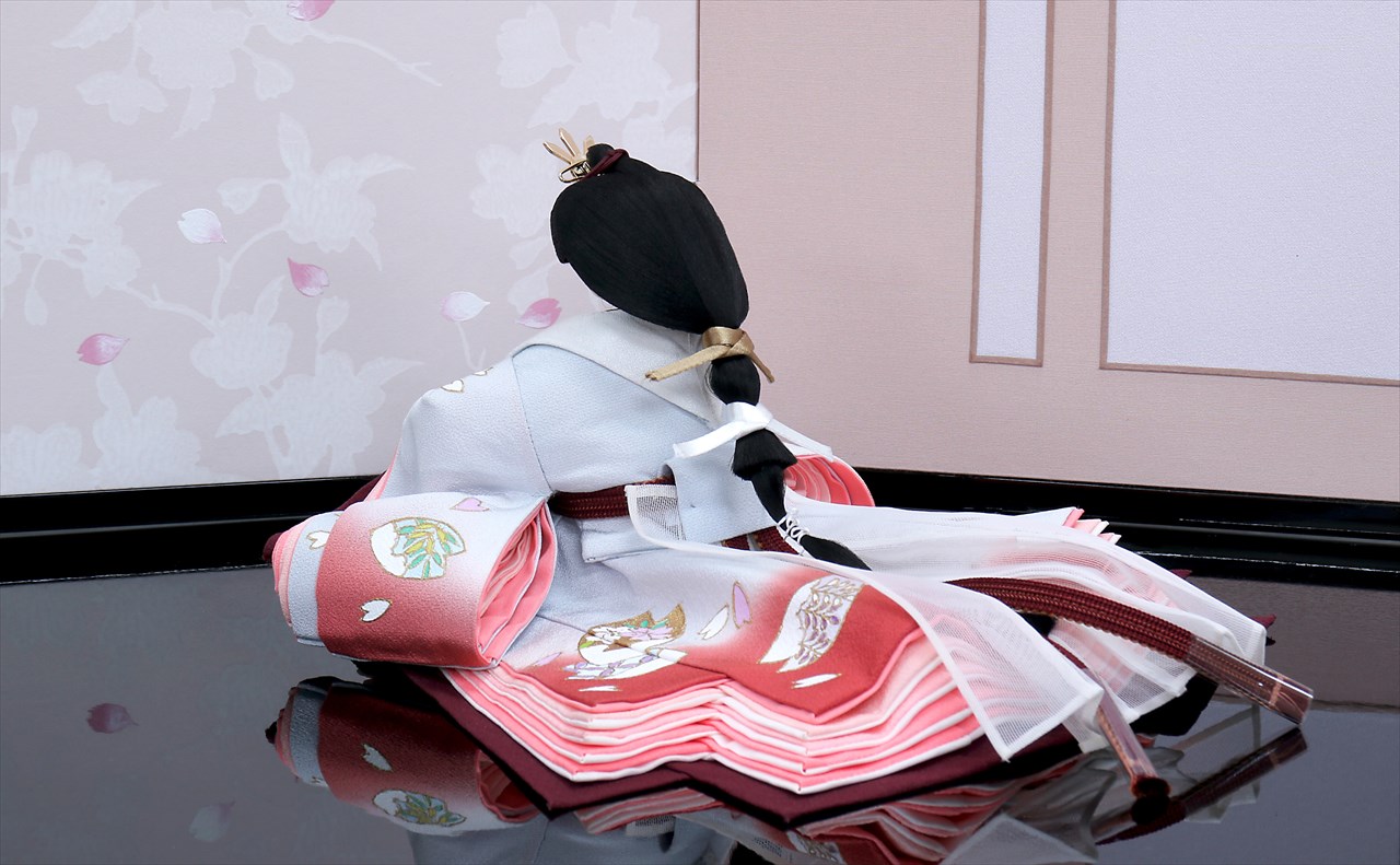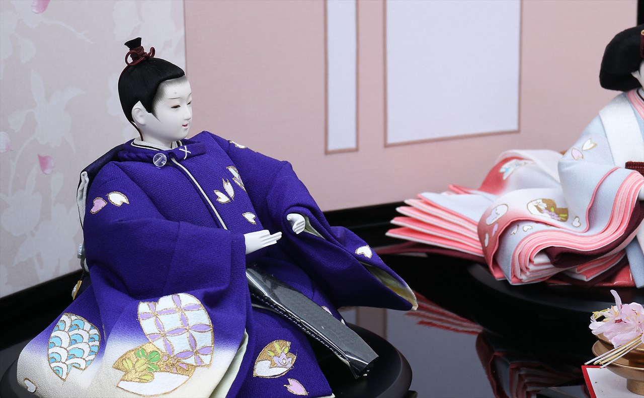 飾台: 黒塗飾台 屏風: 二曲 京唐紙さくらに花かご刺繍 前飾: 重ね金杯に桜水引 雪洞: 駿河千筋細工 梅 行灯コードレス |